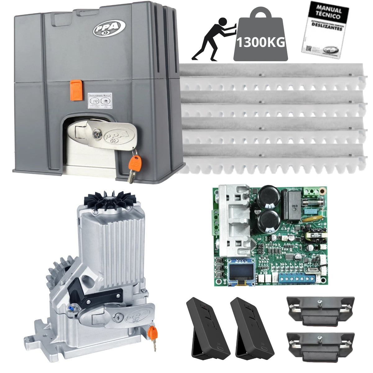 SU VIDA MÁS TRANQUILA CON LOS MOTORES PPA PARA PUERTA CORREDIZA, LOS MOTORES DE LA LÍNEA CONVENCIONAL PPA POSEEN DIVERSOS RECURSOS QUE AUMENTAN LA COMODIDAD Y ATRAEN MAYOR SEGURIDAD A LOS USUARIO, DISEÑADO ESPECIALMENTE PARA REJAS Y PORTONES INDUSTRIALES DE HASTA 1300 KG.